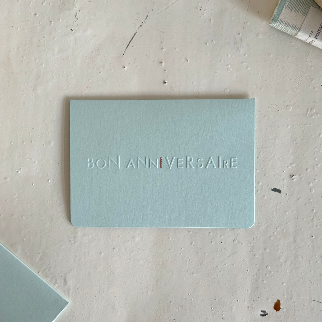 「bon」は「良い」、「anniversaire」は「記念日」を意味するので、直訳すると「良い記念日を」となりますが、 誕生日を祝う際に最も一般的で広く使われる表現です。